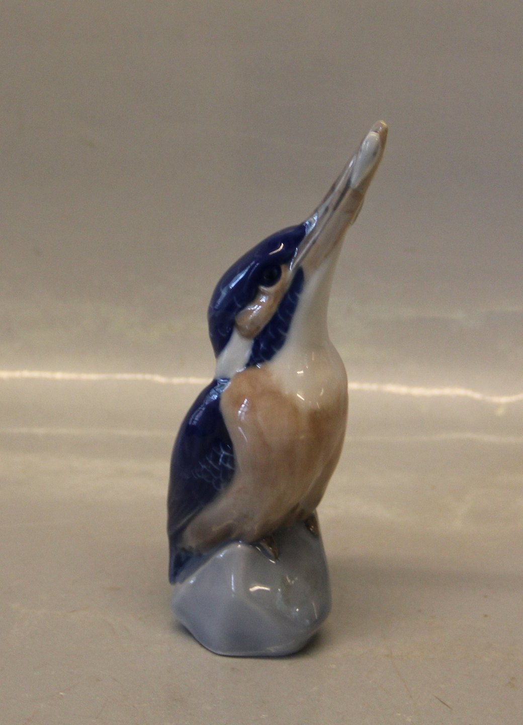Kongelig Dansk fuglefigur 2257 Kgl. Isfugl med fisk 18 cm Peter Herold 1915