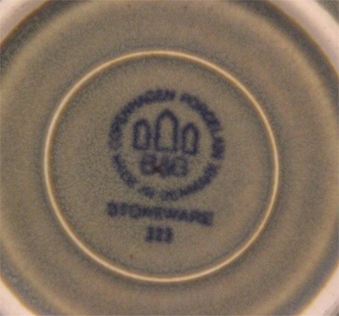 Bing & Grøndahl 323 Lille dyb tallerken 17,5 cm B&G Rune Quistgaard Nissen Kronjyden grønt stentøjsstel. I fin og hel stand. Bing & Groendahl. Stemplet Kronjyden eller Bing & Grondahl Copenhagen Stoneware: Designet for Kronjyden, Nissen af Jens Harald Quistgaard IHQ