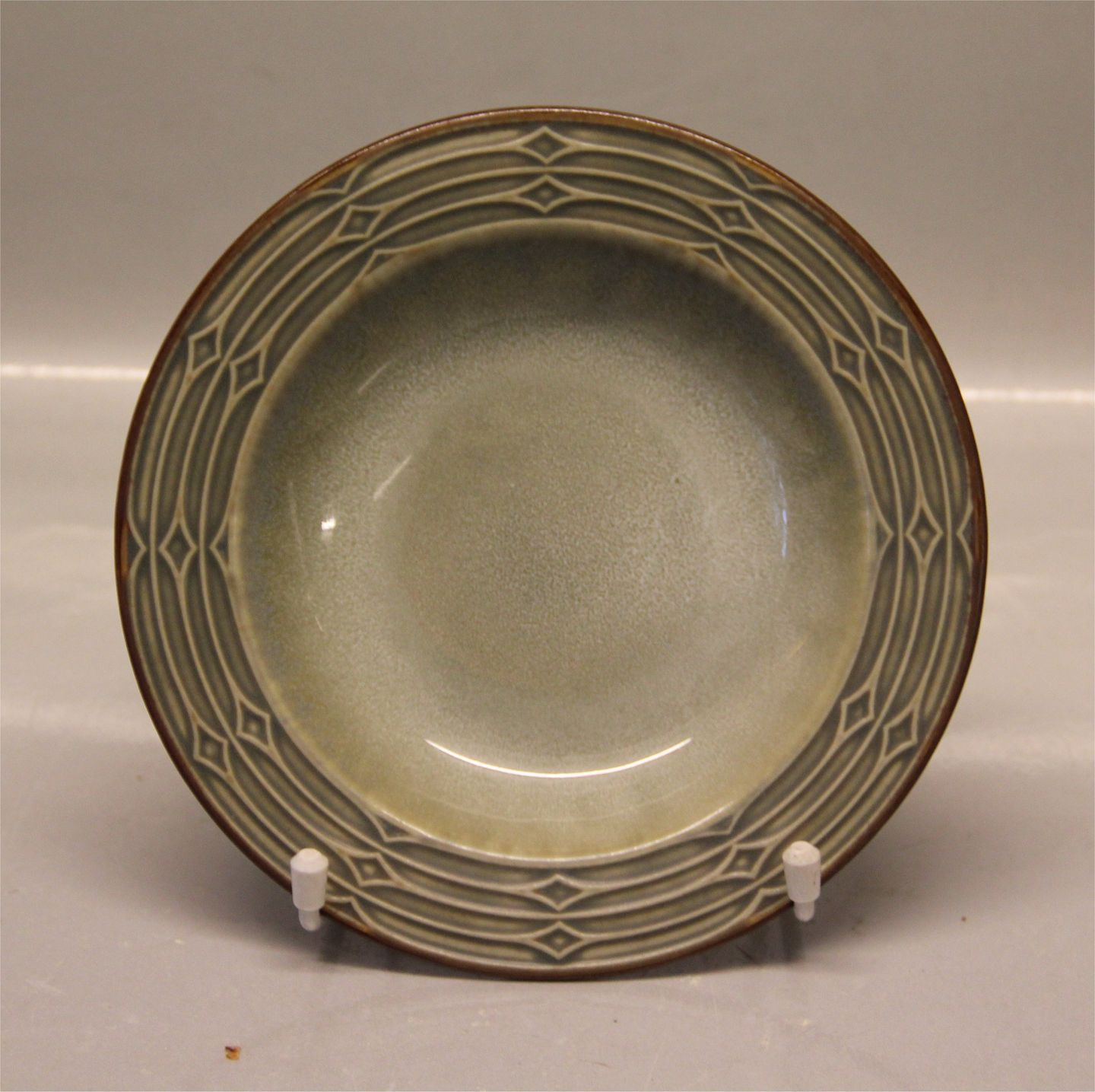 323 Lille dyb tallerken 17,5 cm Bing & Grøndahl Grønt Rune Quistgaard for B&G / Nissen Kronjyden Stoneware