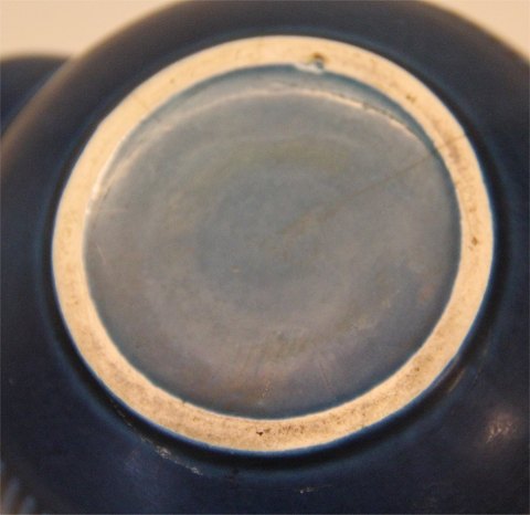 Beskrivelse: Lille Royal Copenhagen Aluminia fajance Tekande Blå Riflet 1940-1943