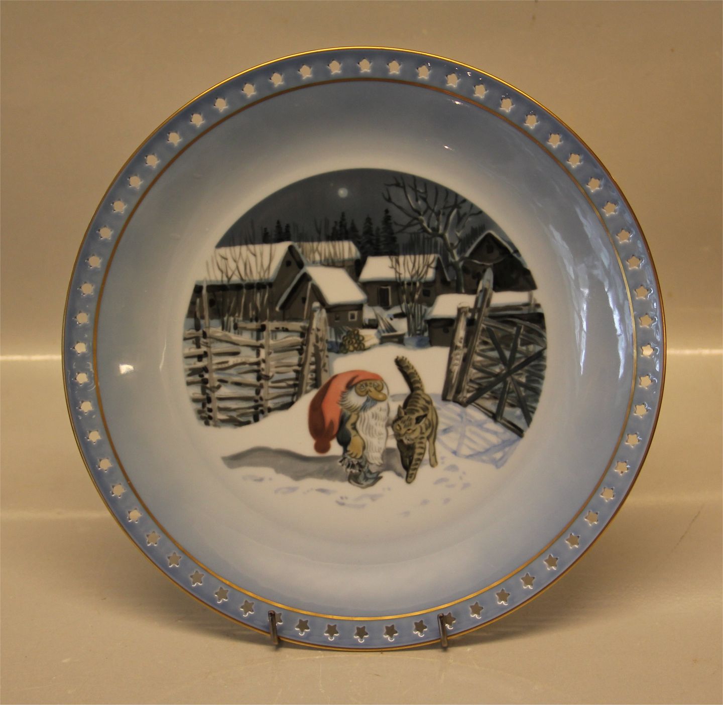 "Tomten", Wiberg B&G 624 - 3610 Julestel 1 510 626 Tallerken - fad 26 cm Nisse og kat uden for porten