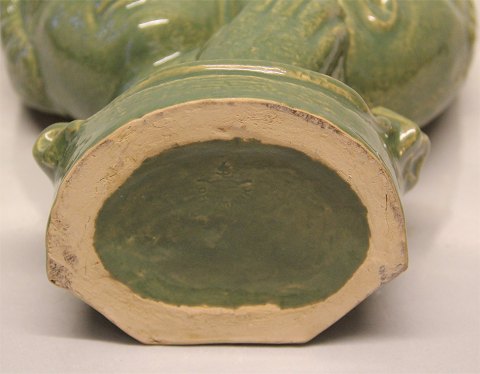 Beskrivelse: Musen for tragediedigtning "Melpomene"/græsk skuespiller. Ej blot til lyst! Svend Lindhart Buste med masker Grøn glasur 23 x 21 cm Sv. Lindhart