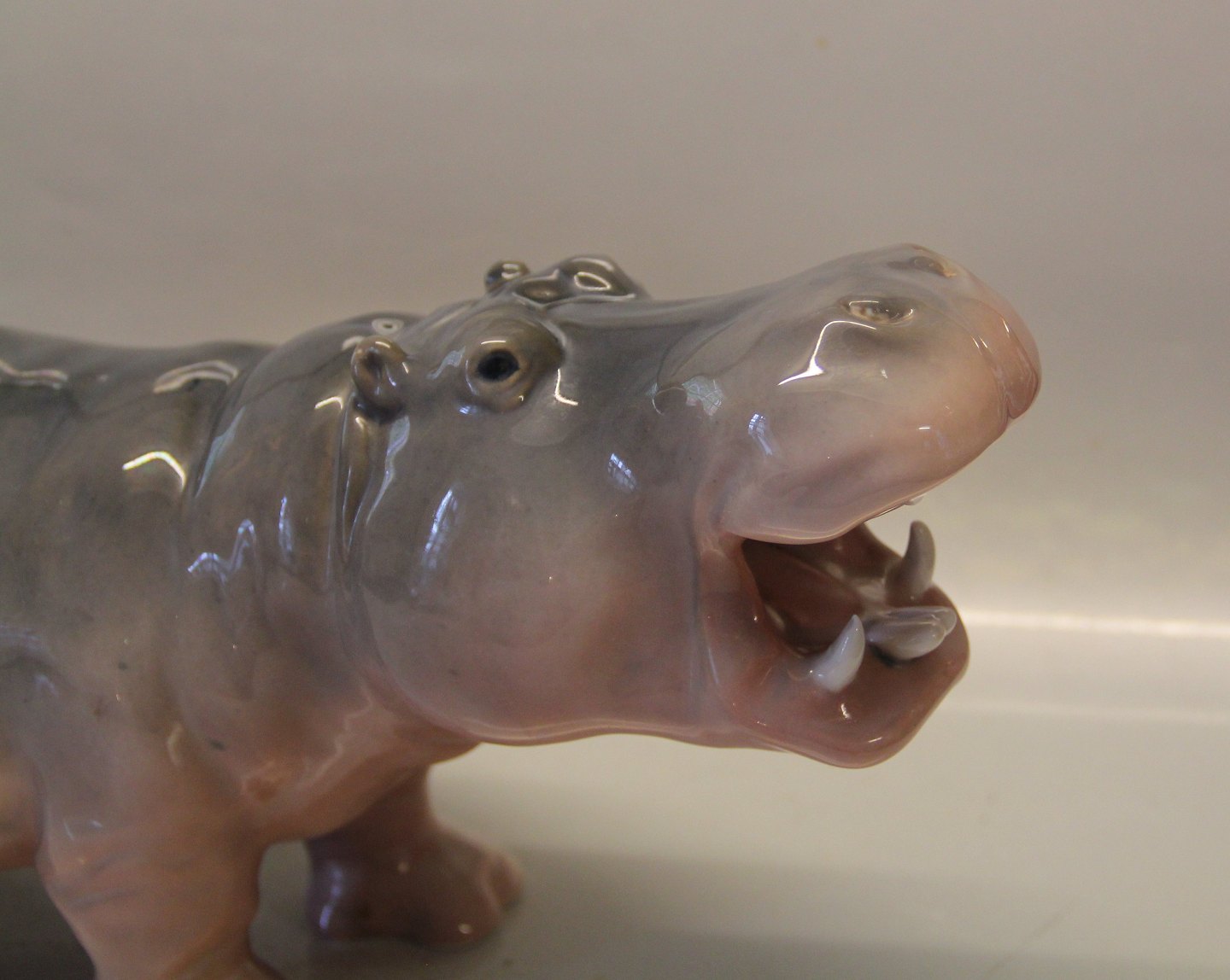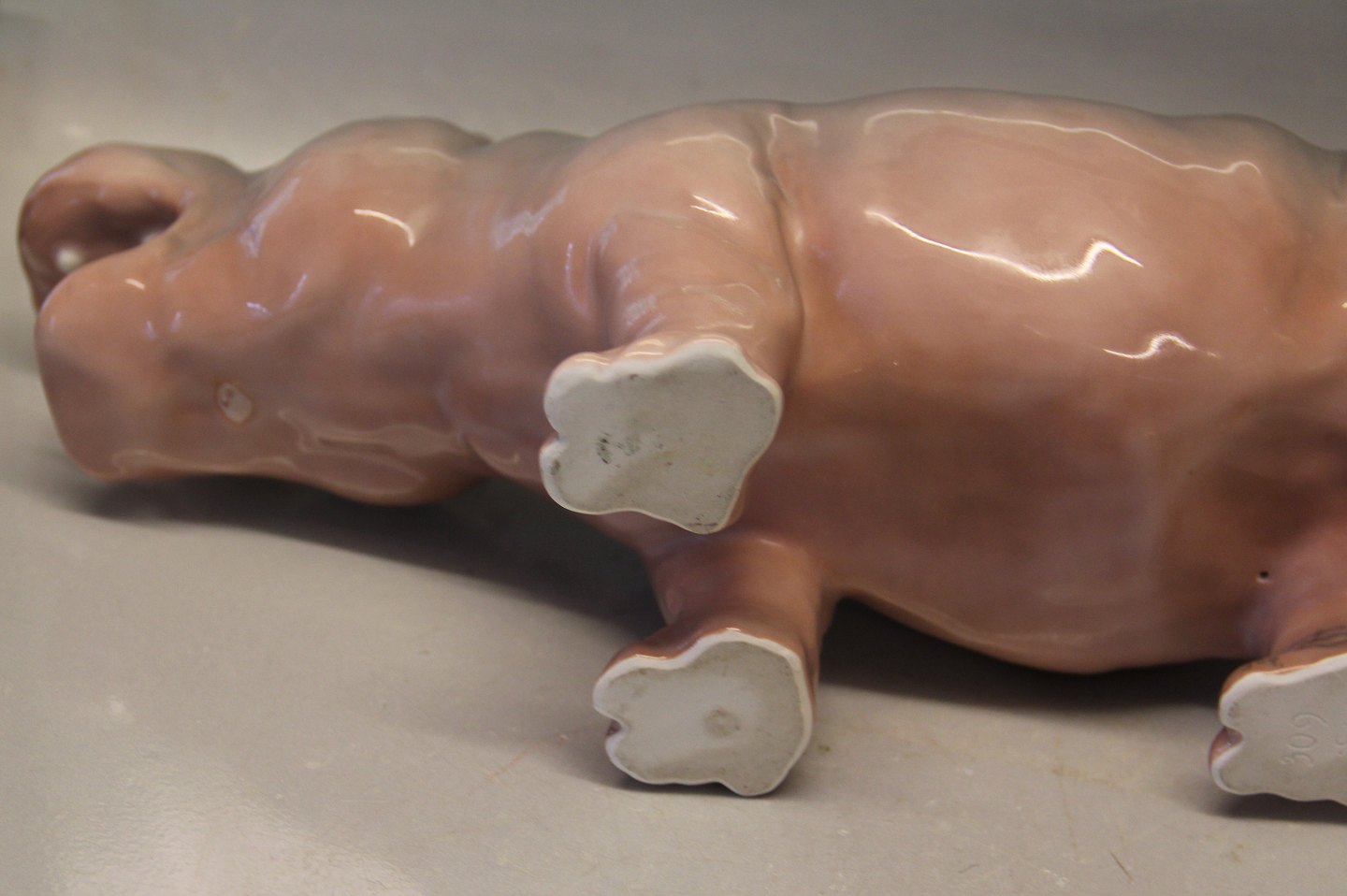 Beskrivelse: Kgl. figur fra Royal Copenhagen 309 Kgl. Pygmæ Flodhest 18 x 34 cm Princess Marie 1901 2nd. I hel og fin stand