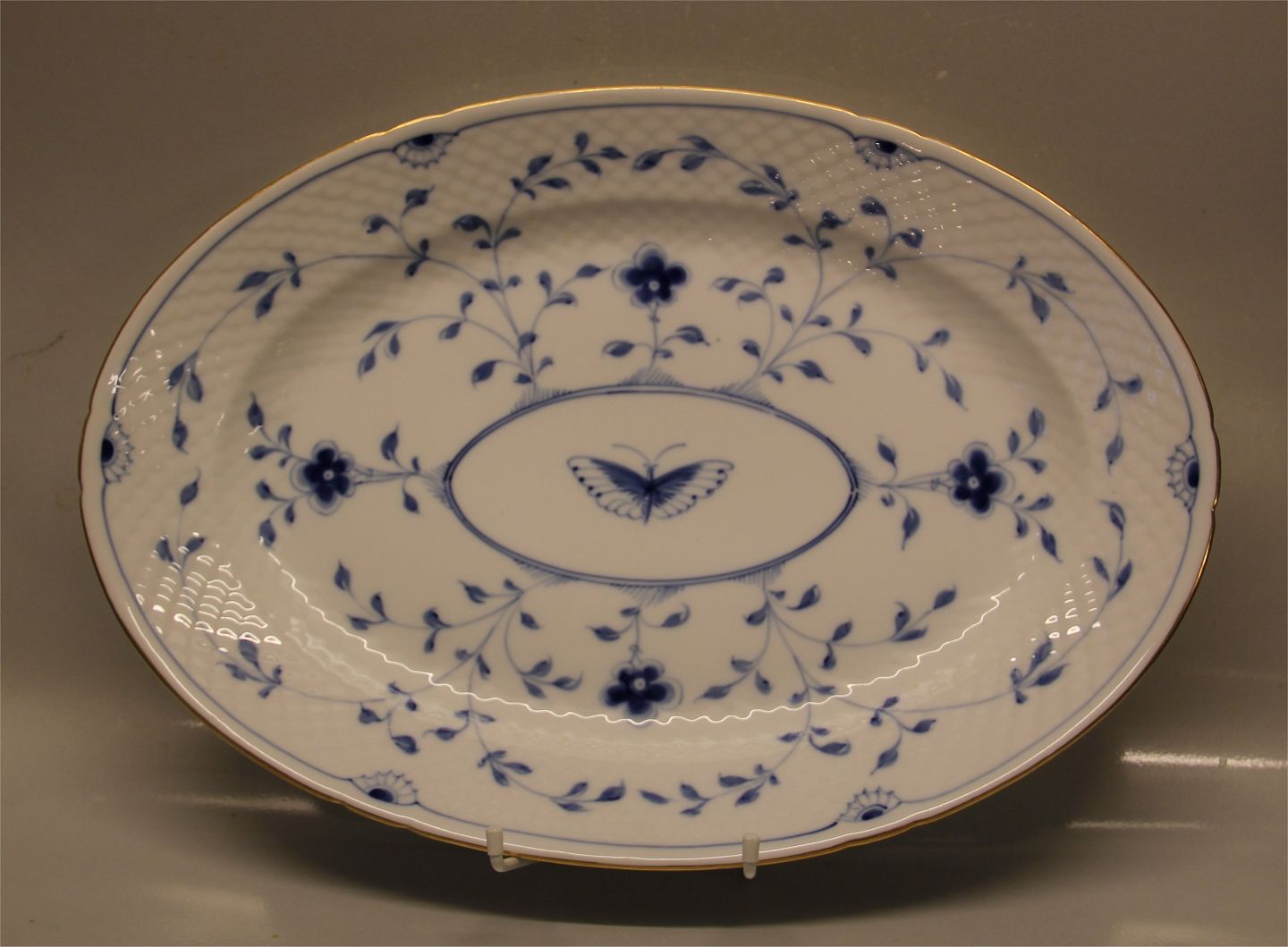 015 Stort ovalt stegefad 40,5 cm (315) B&G Blåmalet Kipling Sommerfugl med guld