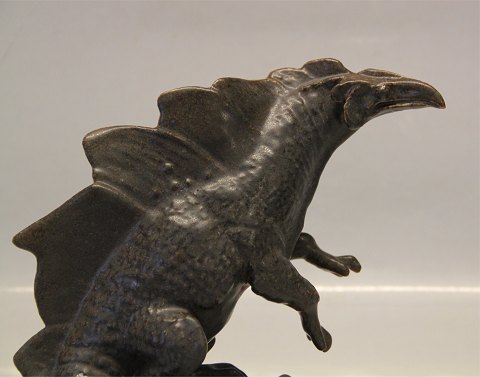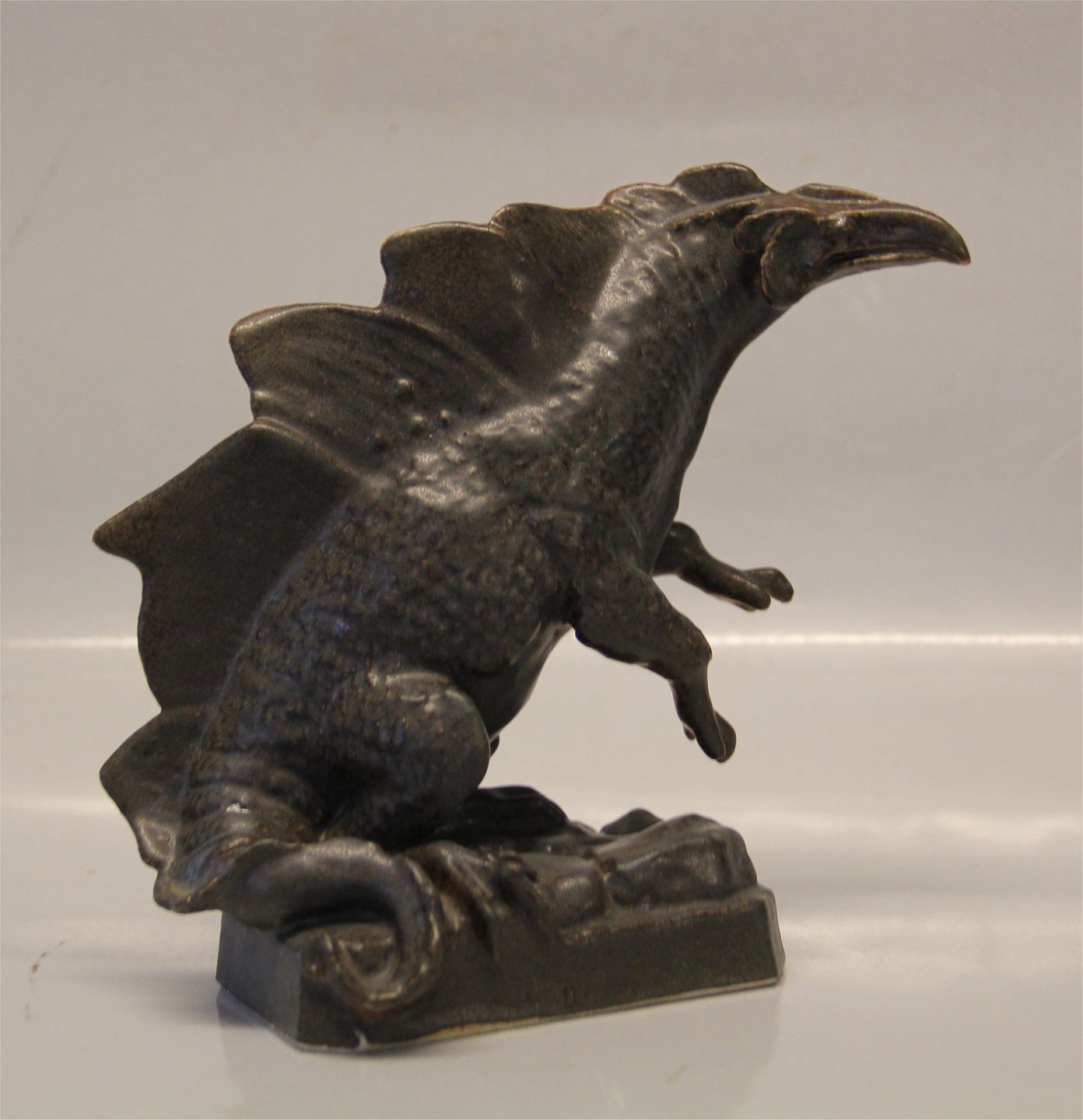 Beskrivelse: Meget Sjælden Dahl Jensen stentøjsfigurfigur Øgle eller drage 18 x 20 cm