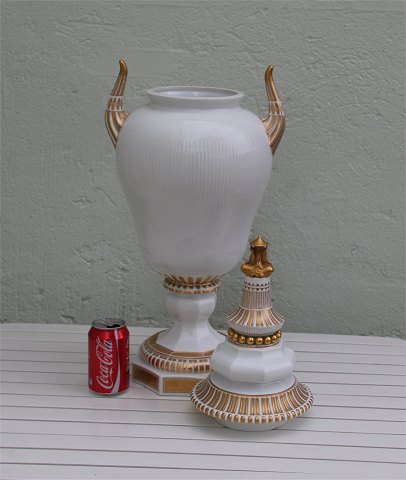 Beskrivelse: Bing & Grøndahl Empire stil Kolosalvase af Hans Tegner 72 cm Kinesisk inspireret låg med guld