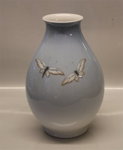 Kgl. fra Royal Copenhagen 2650-2308 RC Vase med hvid blomst og insekter - natsværmmere ? 29 cm I hel og fin stand