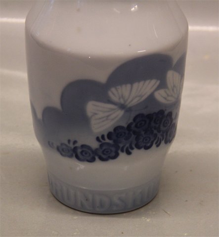 Beskrivelse: Kgl. fra Royal Copenhagen Rundskuevasen Kgl.1910-1920 "Rundskuedag 15 cm blå blomst og sommerfugl I hel og fin stand