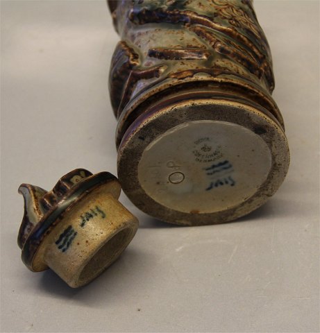 Kongelig Dansk Stentøj 20101 Kgl. Vase med låg 17 cm, fisk i relief, Jais Nielsen, nov 1925