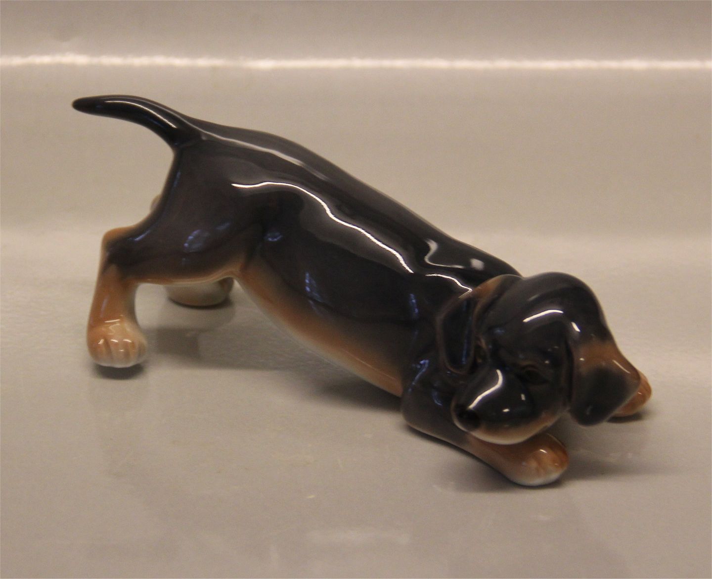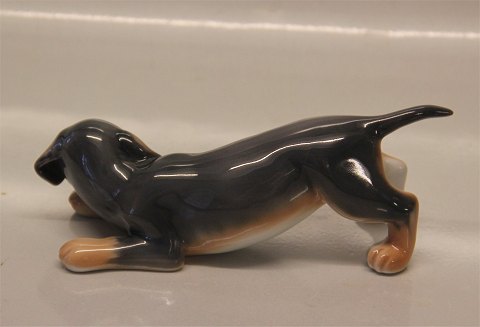 Beskrivelse: Kgl. figur 0681 Kgl. Gravhundehvalp 6 x 16 cm # 1249681 fra Royal Copenhagen I hel og fin stand Grævlingehund -