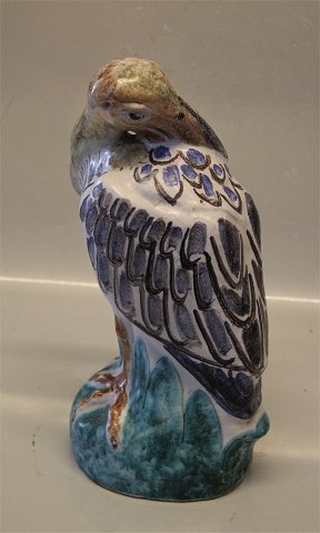 Knud Kyhn Dansk Stentøj Fuglefigur af lertøj / stentøj i form af pelikan. Dekoreret med farverige glasurer. Signeret med KK monogram, 1935. 29 cm høj