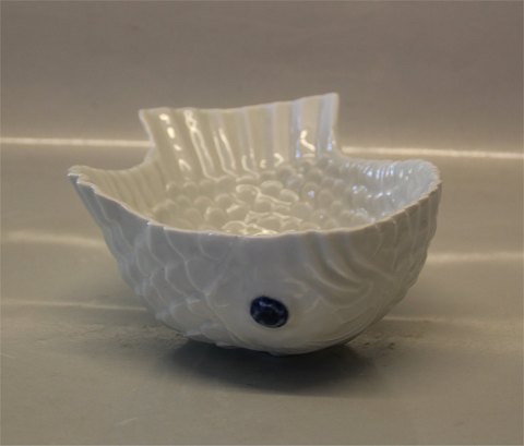 Royal Copenhagen figurine RC White fish bowl 9 x 20 cm signed Jeanne Grut in blue