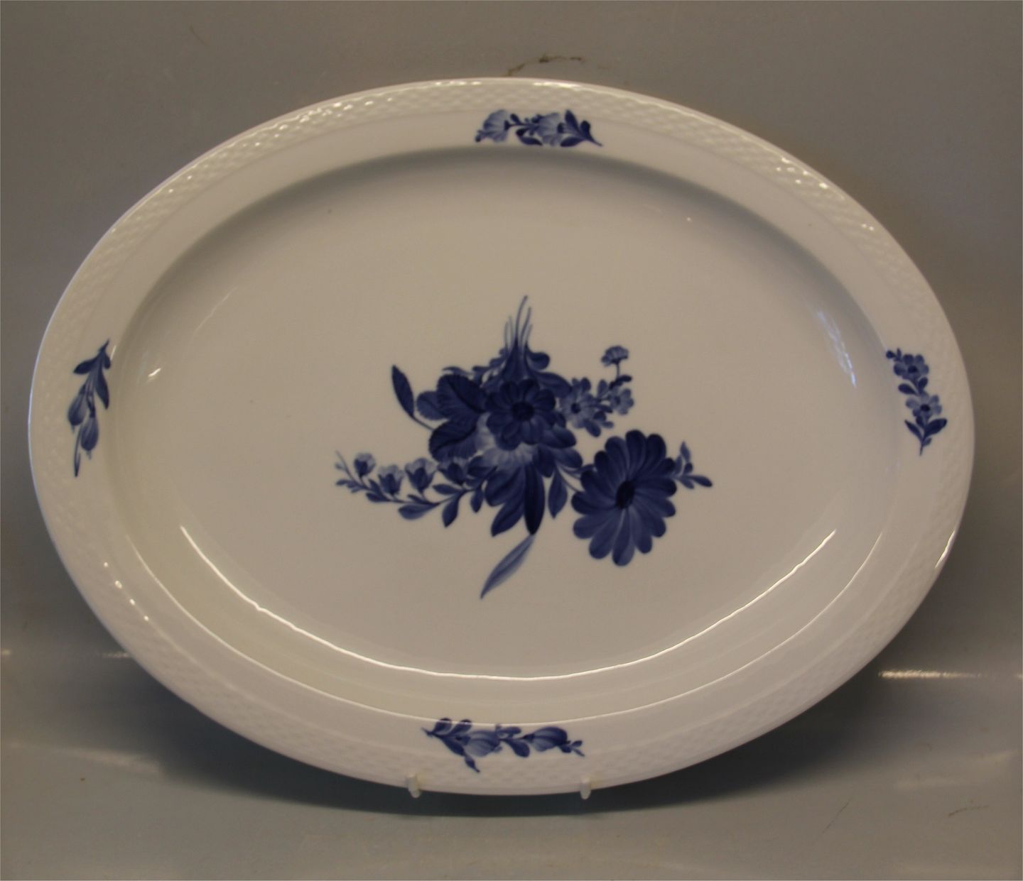 8020-10 Stort ovalt stegefad 47,5 x 37 cm Kongelig Dansk Porcelæn Blå Blomst Flettet