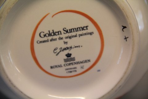 Golden Summer 775 Konfektskål med fugl på hank 27 x 19 cm (1739775 Kgl. Gylden Sommer fra Royal Copenhagen Efter Orginal Aluminia Design af Christian Joachim