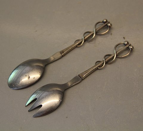 Beskrivelse: Hingelberg Sterling Sølv Signeret F.H. Frantz Hingelberg 925 Lille salatsæt 13.5 cm stål og sterling sølv