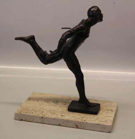 Beskrivelse: Maraton løber kommer over målstregen 24 x 23 cm - Bronze på Marmorfod