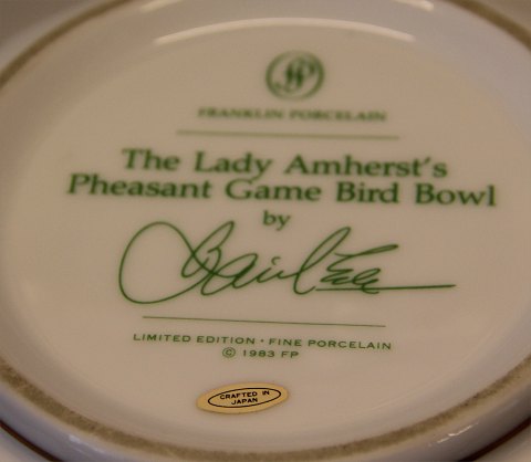Franklin Porcelain The Lady Ampherst's Pheasant Game Bowl by Limited Edition - Fine Porcelain 1983 Crafted in Japan Signeret af kunstneren