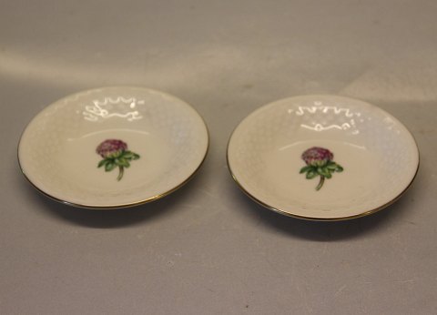 Beskrivelse: Hermod Creme porcelæn, lilla kløver, kællingetand og guldkant, form 356