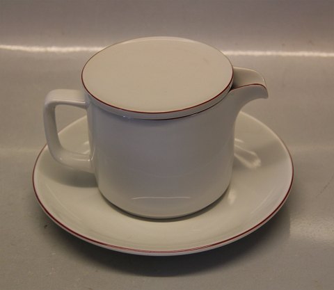 6265 Sauceskål 3 dl. med låg 6318 og løst fad 6238 (563) Rødtop Kgl. Hvidt Porcelæn med rød kant Design Grethe Meyer fra Royal Copenhagen (Weisstopf)