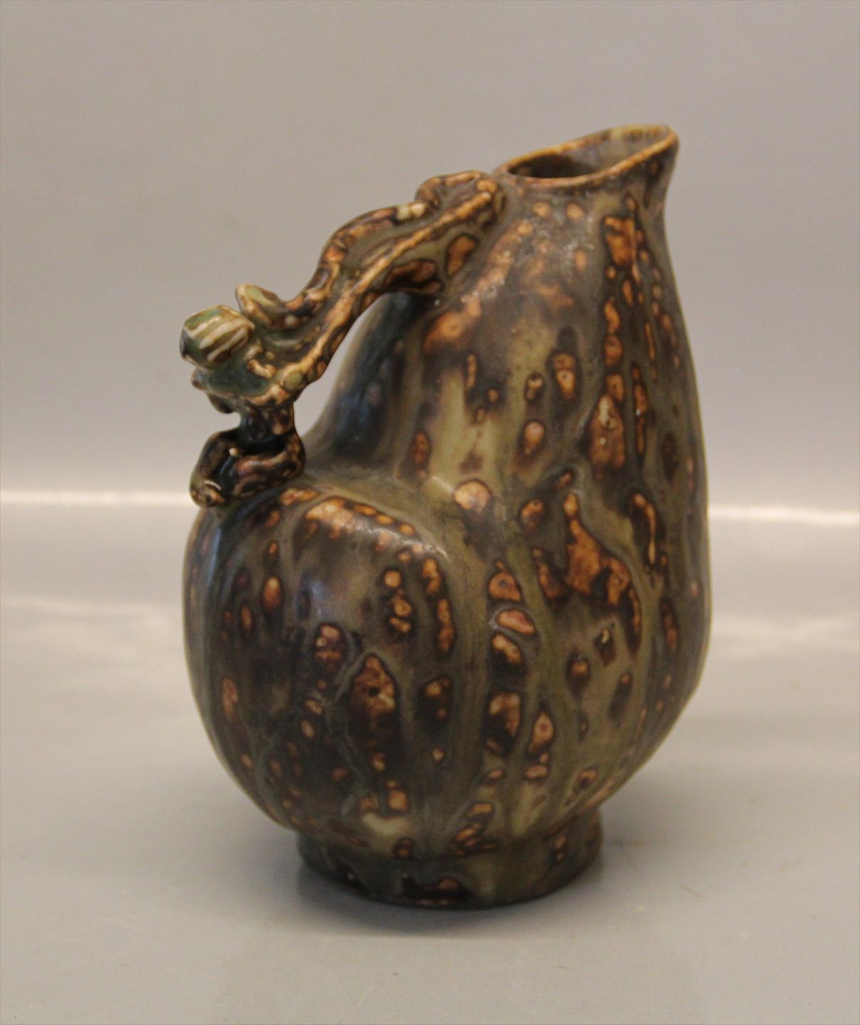 Beskrivelse: Royal Copenhagen stentøj Bode Willumsen Vase 16.5 cm Sung Glasur med slange og dreng Signeret 27-9-43? I fin og hel stand EROS