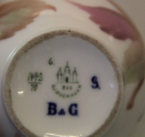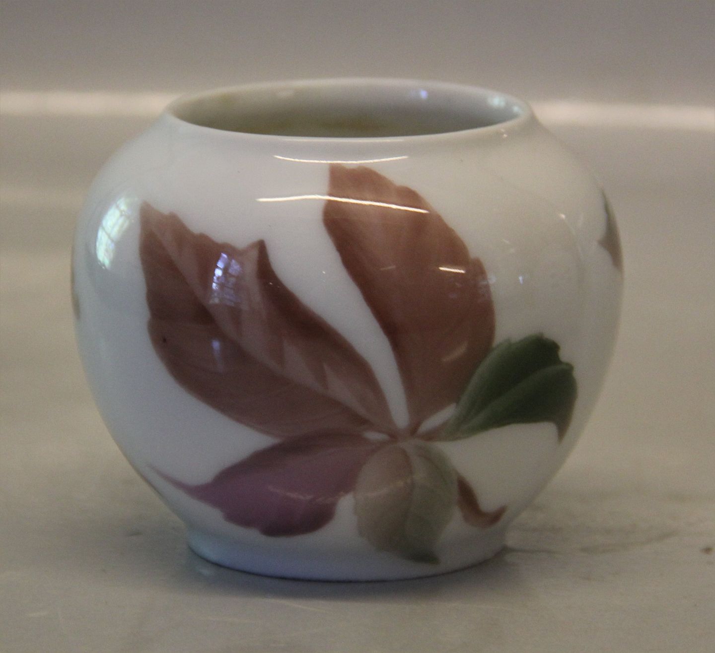 Bing & Grøndahl B&G 1442-70 Art Nouveau Vase med efterårs blad 7 x 9 cm Signeret G - for Fanny Gaarde ?