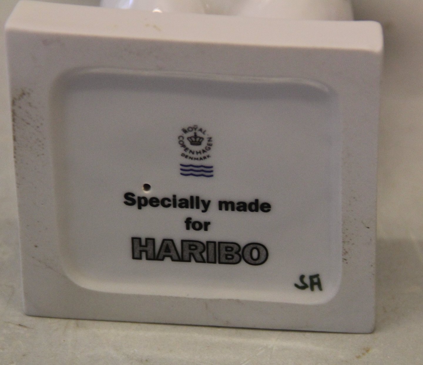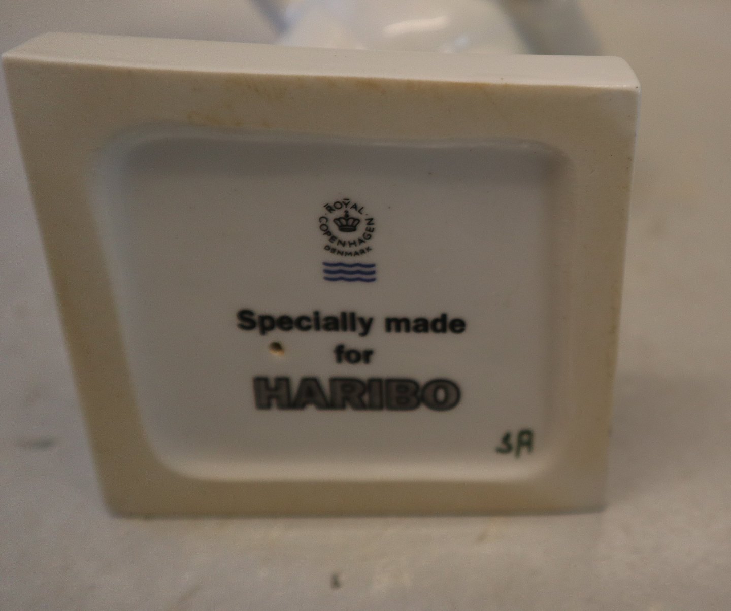 Beskrivelse: Kgl. figur fra Royal Copenhagen Haribo Vingummibamse. Glad Logo Bjørn Specially made for Haribo 20.5 cm I hel og fin stand