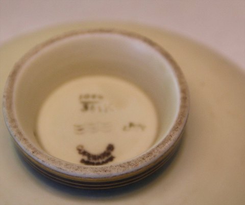 Aluminia kunstfajance 1006-31 Skål, rund, hjort og ornamentkant 5 x 13 cm M.5. mat porcelæn med rig gulddekoration og blåt