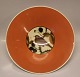 Gunhild Aluminia kunstfajance 1453 Frugtskål, Solsort på brumbærgren 8.5 x 32 cm , Gunhild 1933