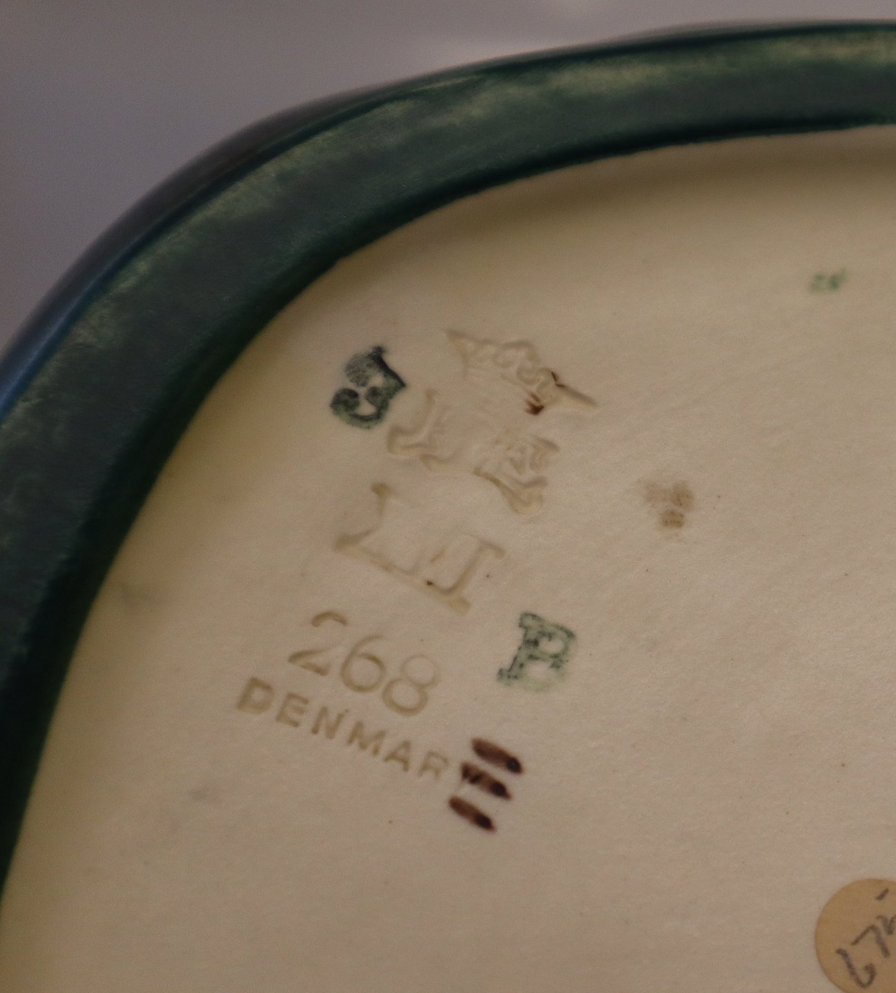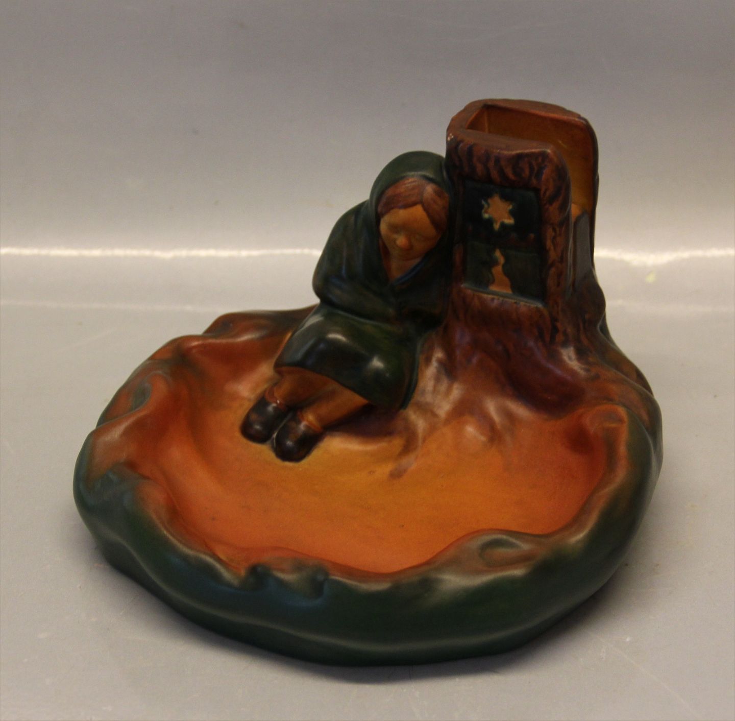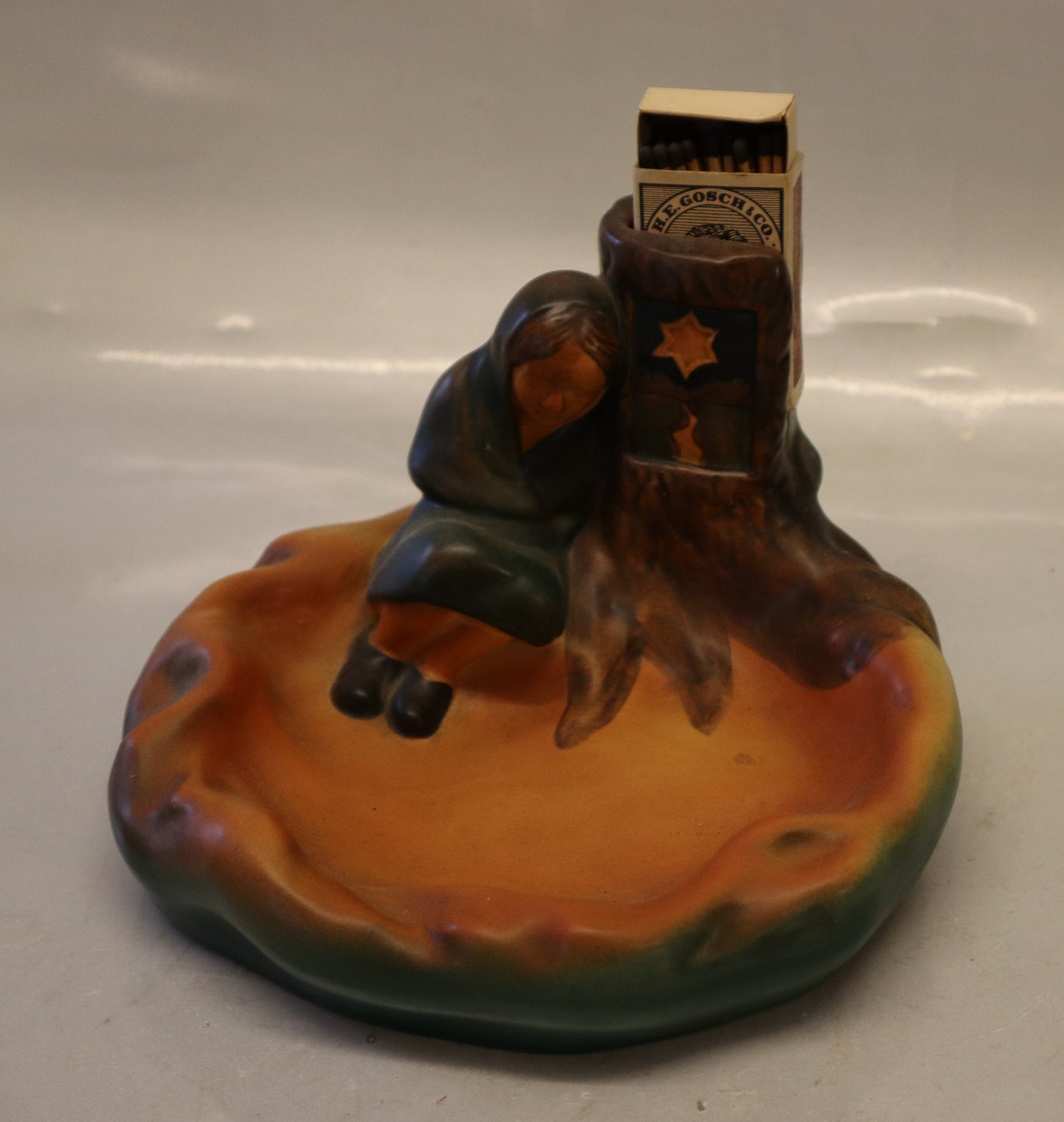 Beskrivelse: 268 Den lille pige med svovlstikkerne 18 x 11 cm Viggo N Myhregaard før 1927 Keramik fra P. Ipsens Enke Kgl. Hof. Terracottafabrik 1843-1955