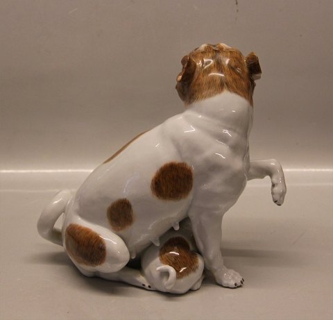 Antik Bulldog med hvalp 24 x 26 cm Carl Thieme