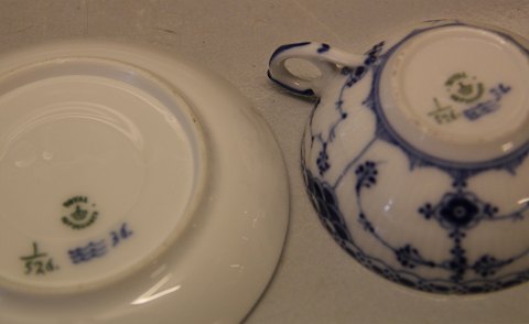 Royal Copenhagen Musselmalet halvblonde 526-1 Lav kaffekop 3.5 x 8 cm og underkop 11.3 cm