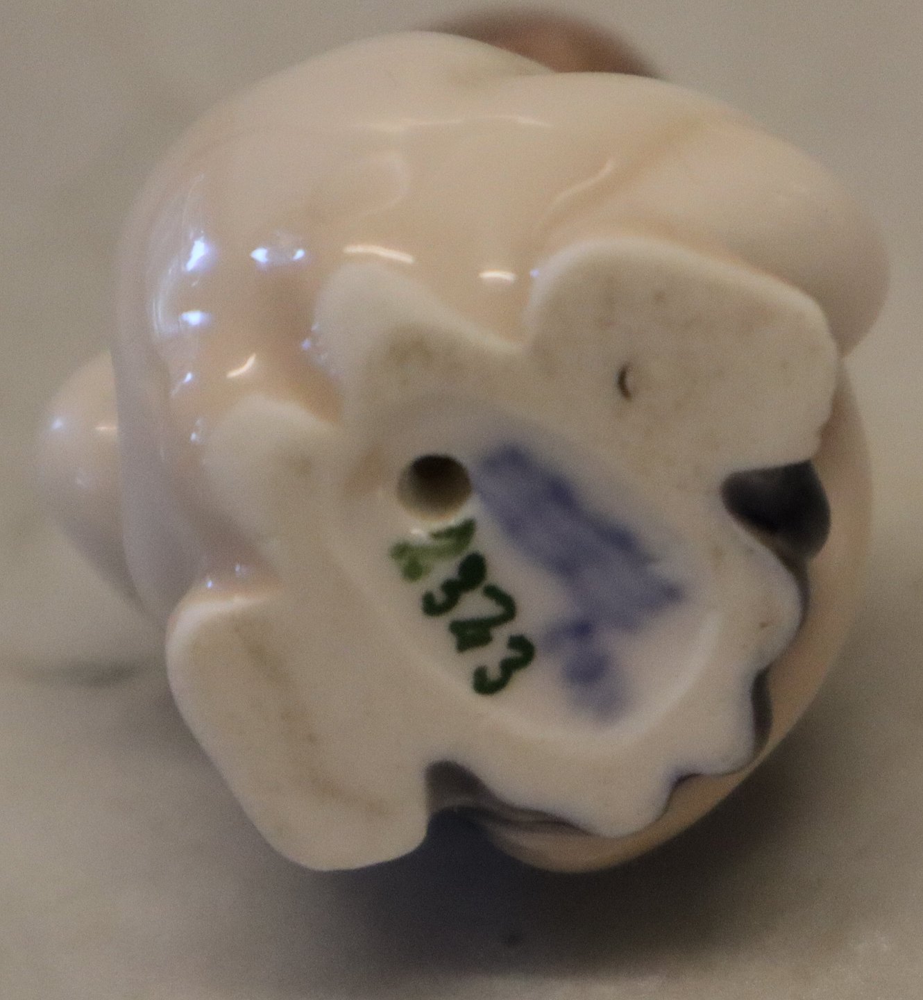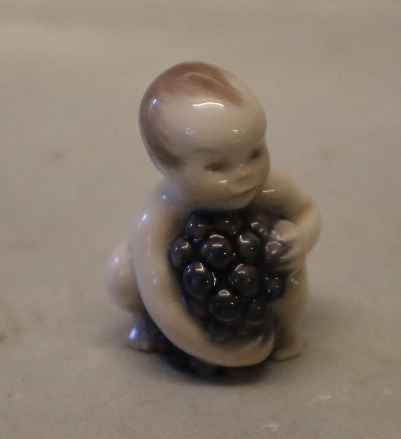 Beskrivelse: Kgl. fra Royal Copenhagen 2323 Kgl. Barn med druer 5 cm V. Waldorff 1923 I hel og fin stand