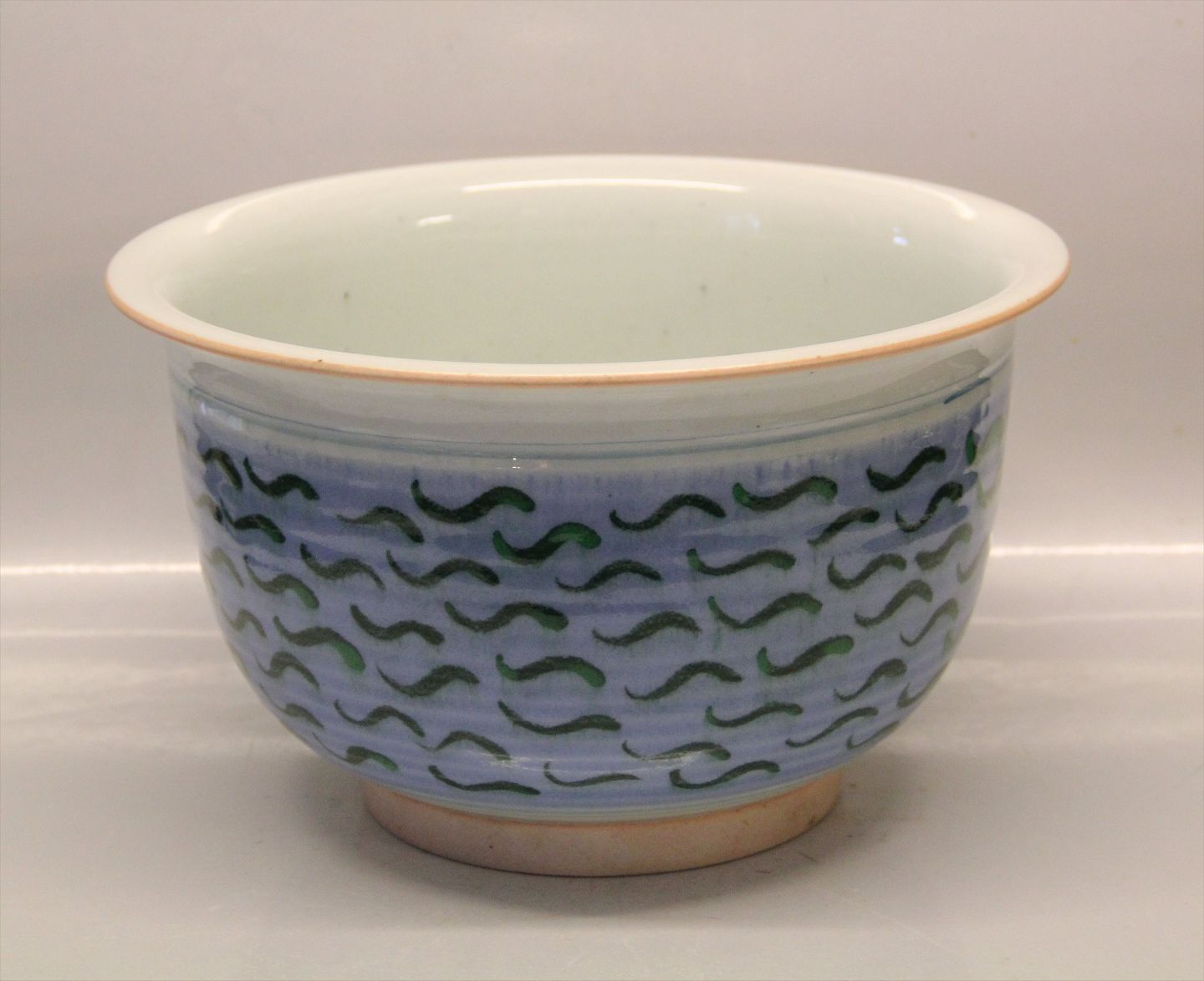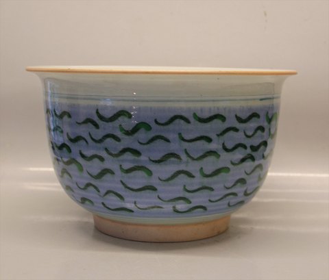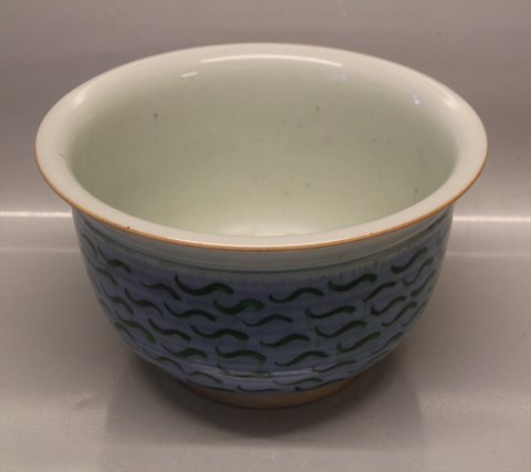 Bodil Manz Rund Skål med lyseblå og grøn dekoration 15.7 x 27 cm