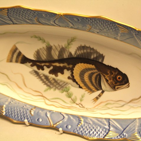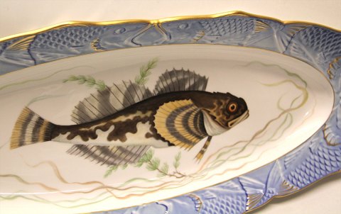 Kongelig Dansk 1212-3001 Blå Fiskefad Cottus Scorpius 60 x 23 cm