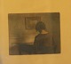 Peter Ilsted Opus 1. Ung Pige ved et halvrundt Bord. Signeret Peter Ilsted Lysmål 15,7 x 20 cm 1909 Farve-Mezzotinte. Samtidig slidt guldramme 45 x 41 cm