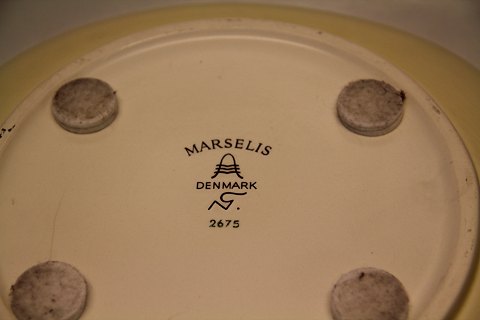 Aluminia kunstfajance 2675 Marselis Gult fad 30 x 5 cm med firkant mønster 1955