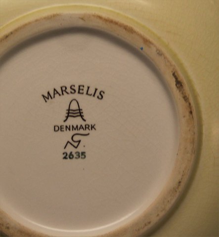 2635 Marselis Gul skål, rund-elipseformet med zig-zag mønster Nils Thorson, 1953 Aluminia kunstfajance