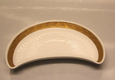 414-11551 Halvmåneformet, assiet 21 cm (1114352) Kgl. spisestel fra Royal Copenhagen Guld Vifte. Designet af Arnold Krog 1909. I hel og fin stand (Gold Fan)