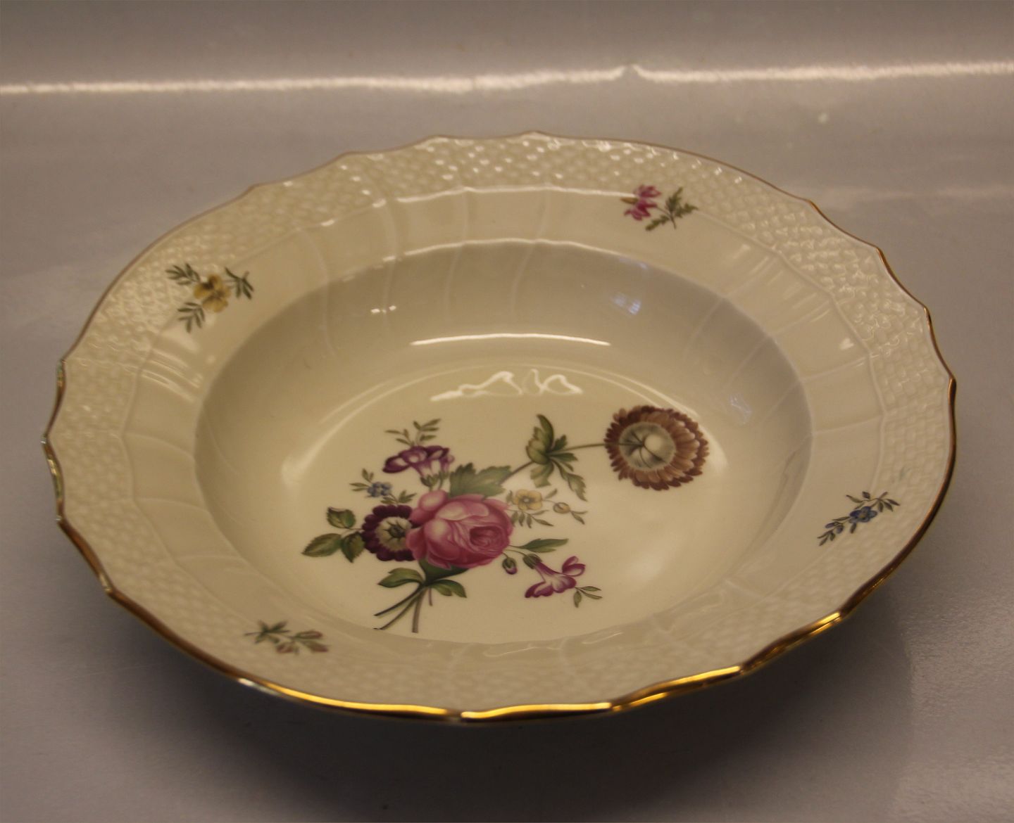 1615-910 Plate, deep 23.5 cm 9 1/10" Royal Copenhagen Frijsenborg. Multifloral decoration on curved cream porcelain with gold rim