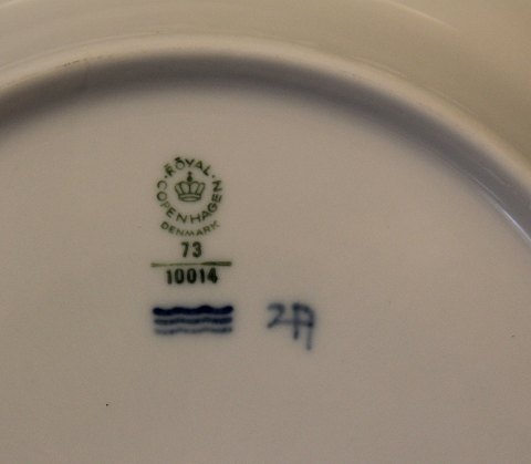 73-10014 Kgl. Dyb tallerken 23 cm , blålig Kgl. Skærsommernats drøm rødlig # 72 og blå # 73 Marguerittestellet designet af Arnold Krogh. Med marguerittet og guldsmede. Genskabt i 1970erne. Royal Copenhagen Midsummer Night's Dream