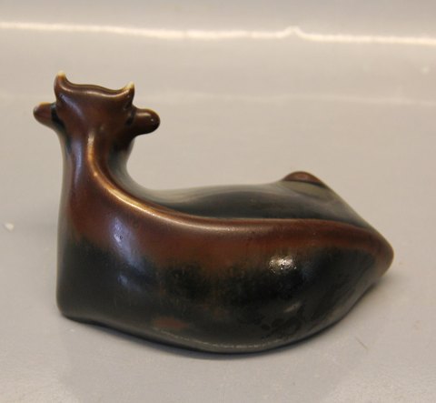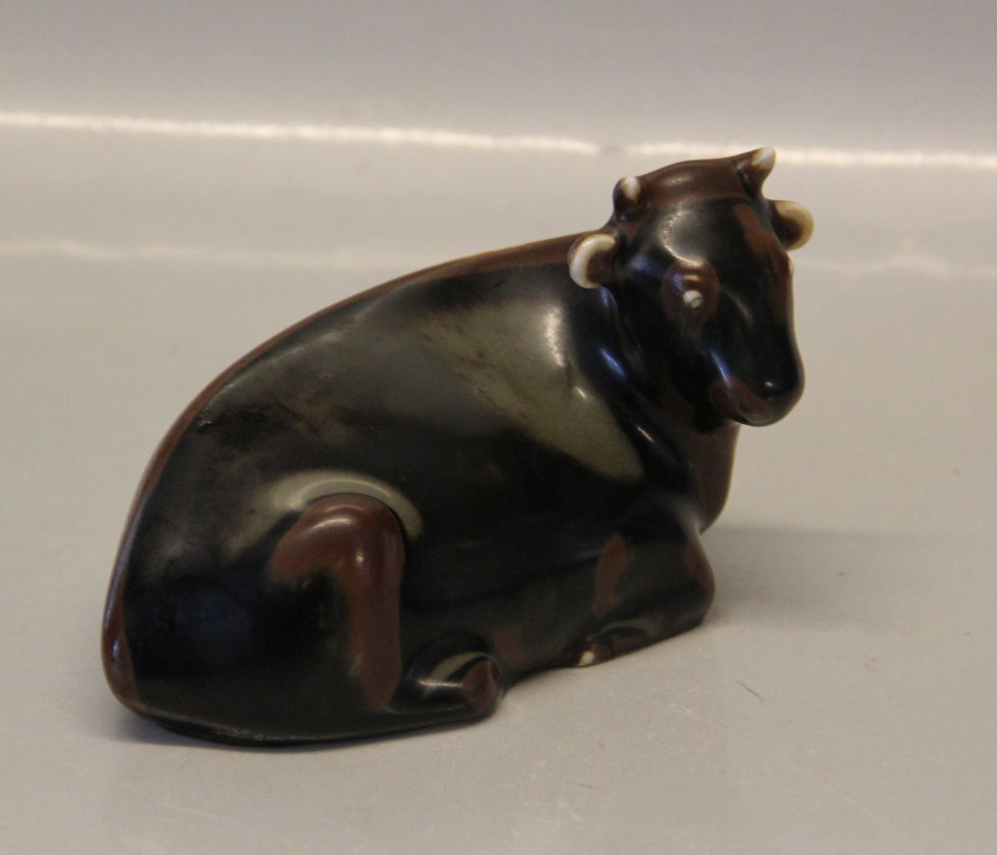 Beskrivelse: Bing & Grøndahl stentøj B&G 051 A - 905 Liggende ko 9 x 15 cm Gauguin ? I fin og hel stand Bing & Groendahl