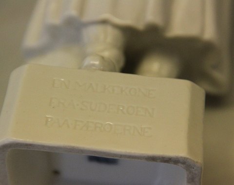 Beskrivelse: Kgl. Normandsdal Nr 15 Kgl. En malkekone fra Suderøen på Færøerne 28 cm Blanc de Chine fra Royal Copenhagen I hel og fin stand