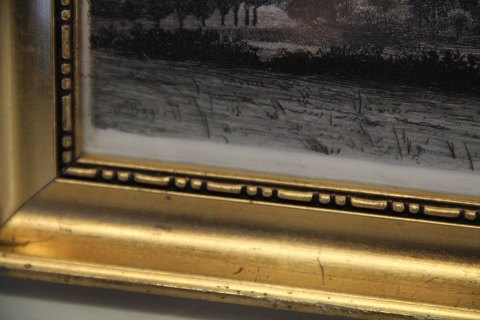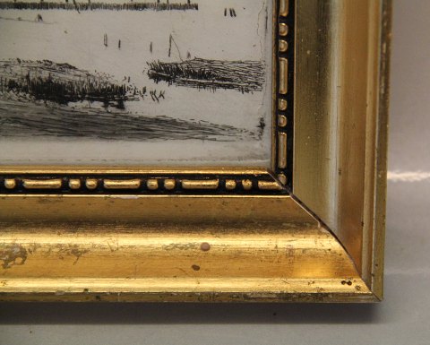Peter Ilsted Radering Aftenlandskab ca 32 x 18,cm med guldramme Signeret PI 1899