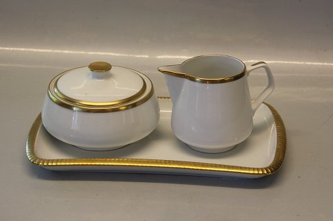 Golden Sun - Gylden Sol 096 Bakke, aflang 27 x 15 cm (364). Form 674 er formgivet af Sigward Bernadotte. Denne form findes i hvidt, med bred guldkant (Gylden Sol), med smal guldbelægning på inderkanten (Vega), med grønt og guld (Perseus), med rødt og guld (Herkules) og beige og guld (Norma).