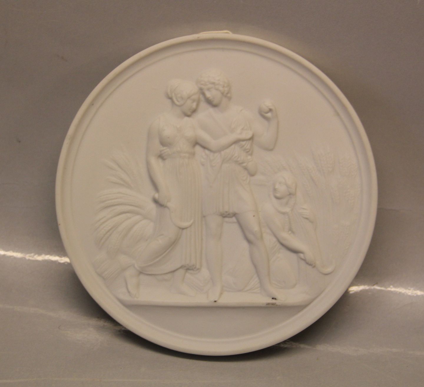 Beskrivelse: B&G 4004 "Livets aldre - årets tider" Sommer - Ungdom Biskuit Efter Thorvaldsen Relief Rom 1836