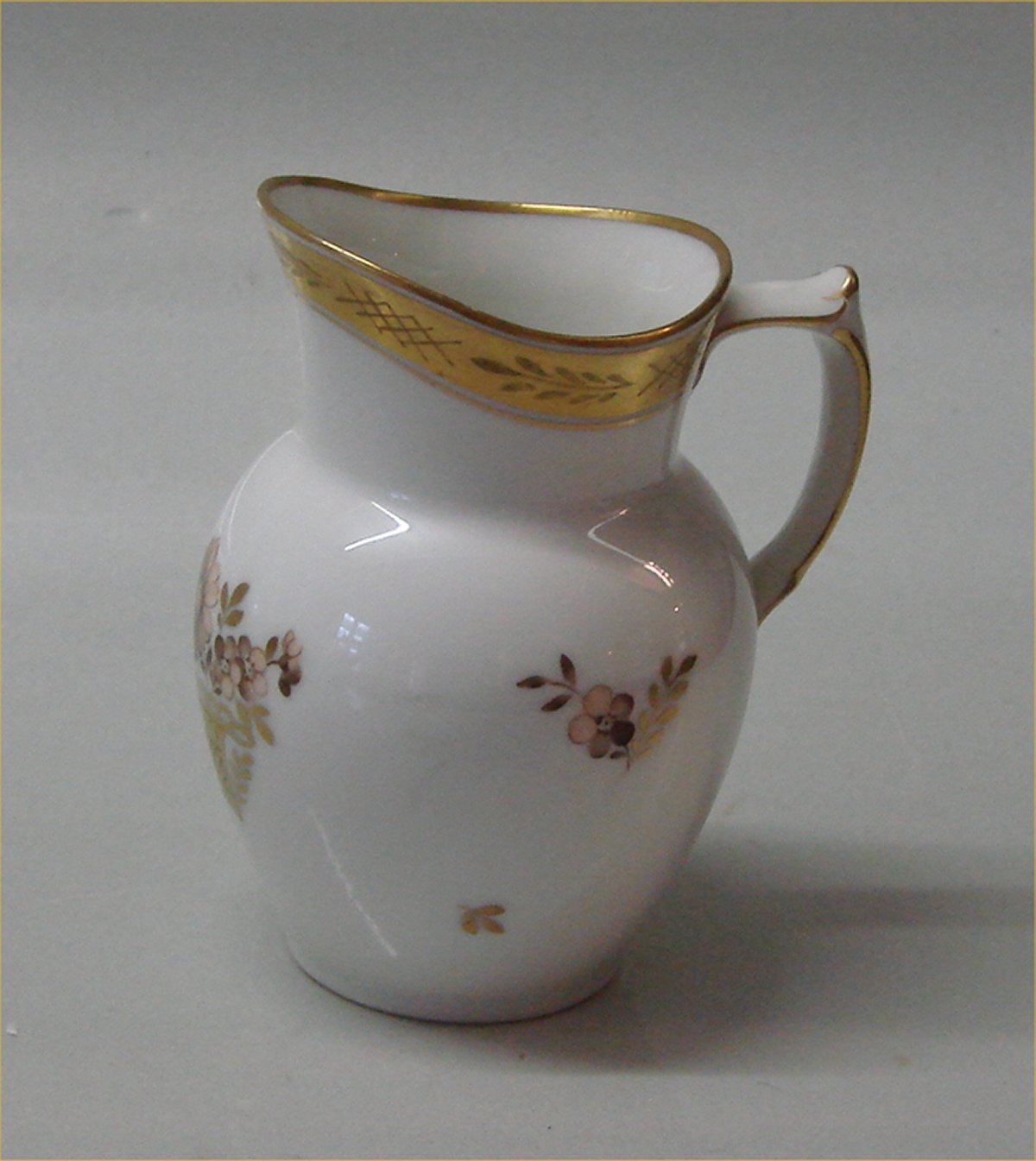 Kgl. 9179-595 Flødekande 10 cm Royal Copenhagen Guld dekoration på hvidt porcelæn 1927. I hel og fin brugt stand Golden Basket