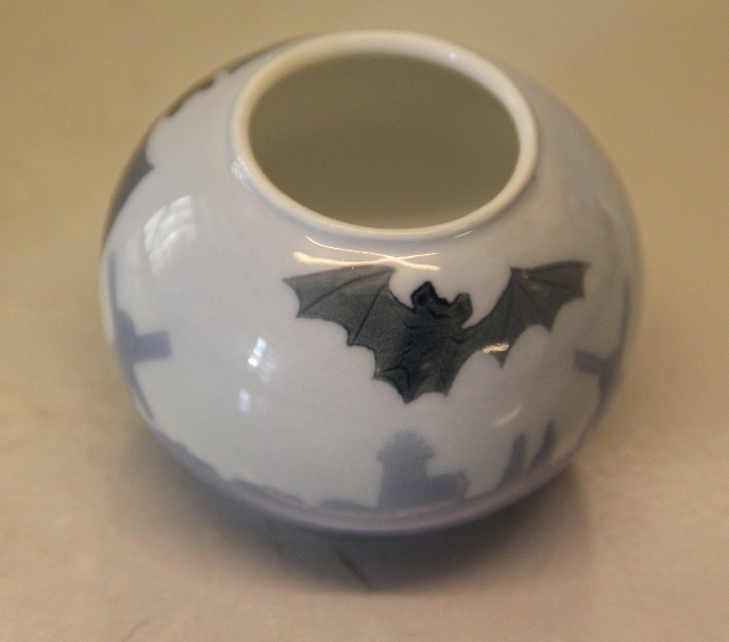 Kongelig Dansk 225-42 Kgl. Vase 6 x 8 cm Flagermus i byens skumring maler # 69 Præ 1900