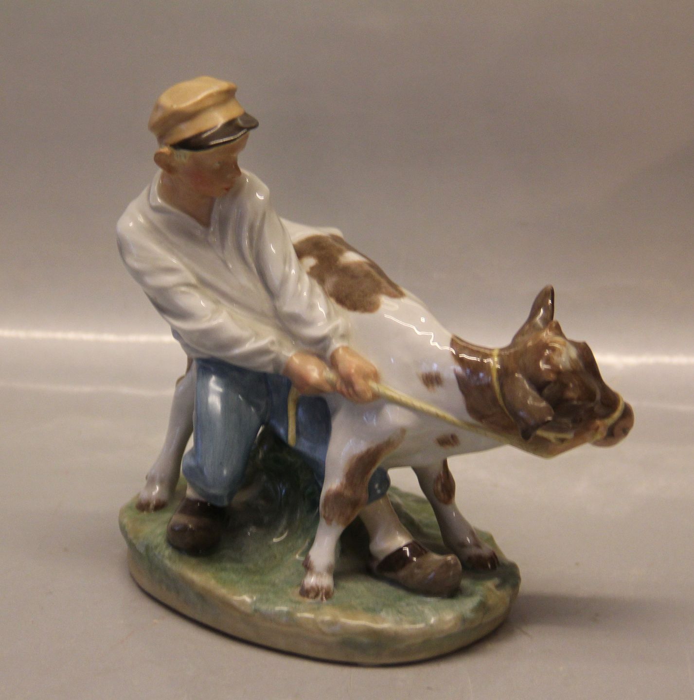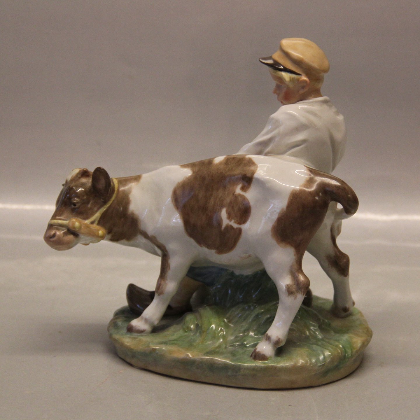 Kongelig Dansk 0772 Kgl. Dreng med kalv Chr. T. 1906 6.5" overglasur dekoreret
