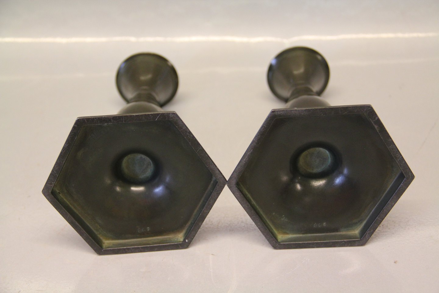 : Par Lysestager Diskometal 15.5 cm Just Andersen D 143 Art Deco Fin patina
