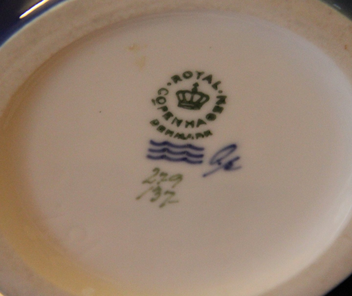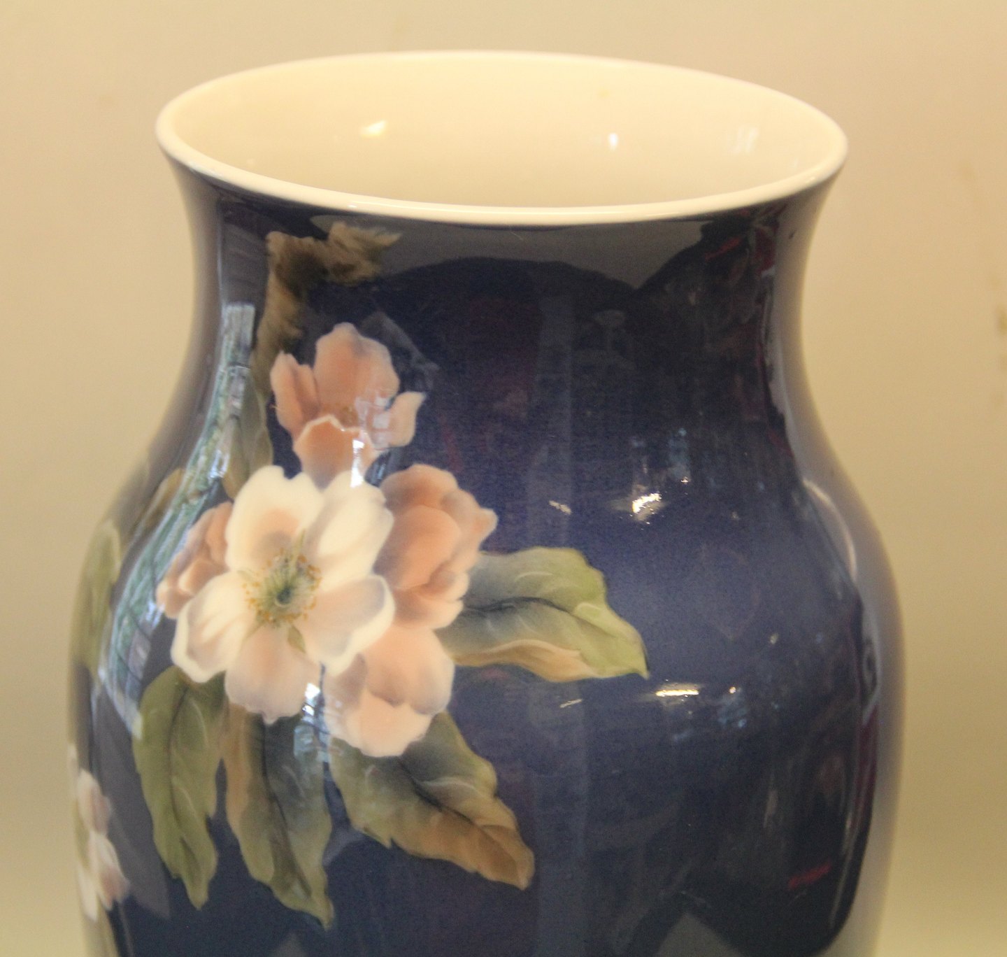 Beskrivelse: Kgl. fra Royal Copenhagen 279-137 Kgl. Vase Frugtgren med blomster på dyb blå 31.5 cm I hel og fin stand
